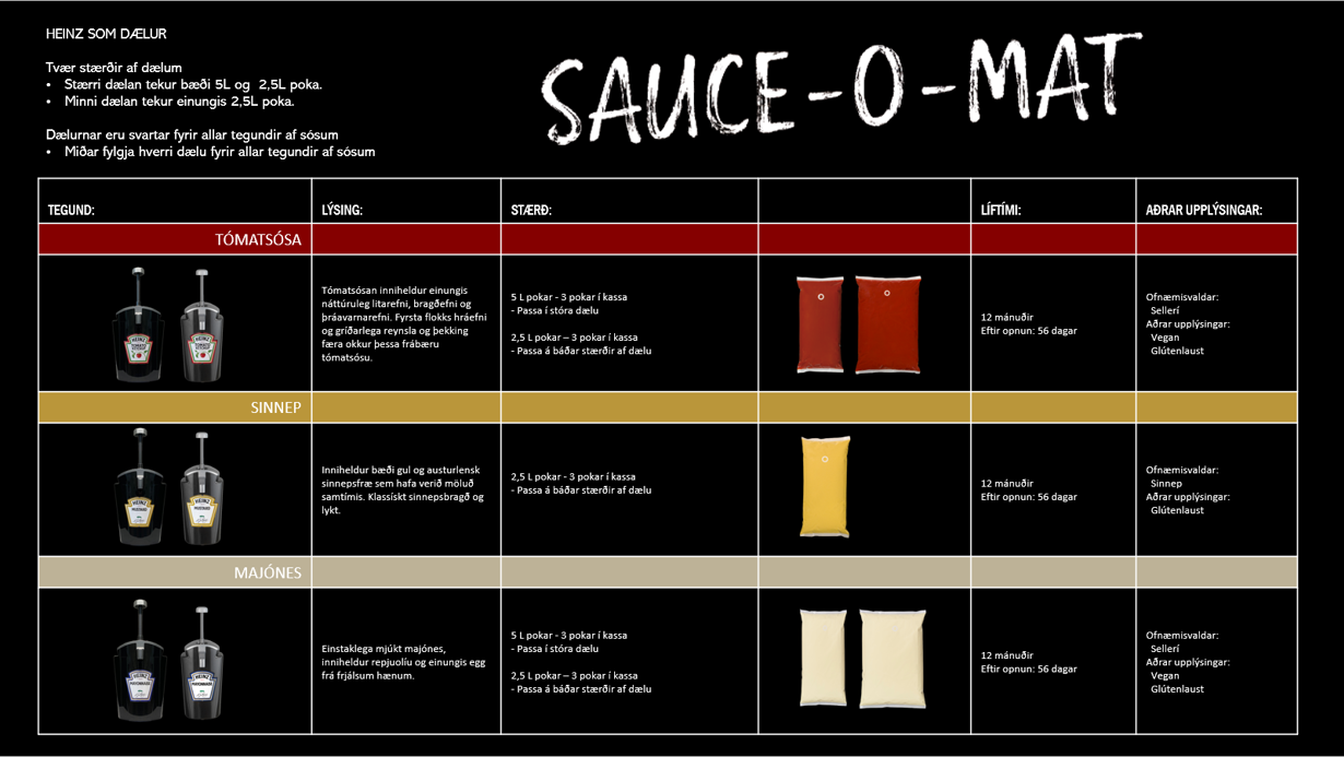 Heinz býður upp á frábærar launsir þegar kemur að því að skammta sósur og sjálfafgreiðslu með sósur fram í sal.